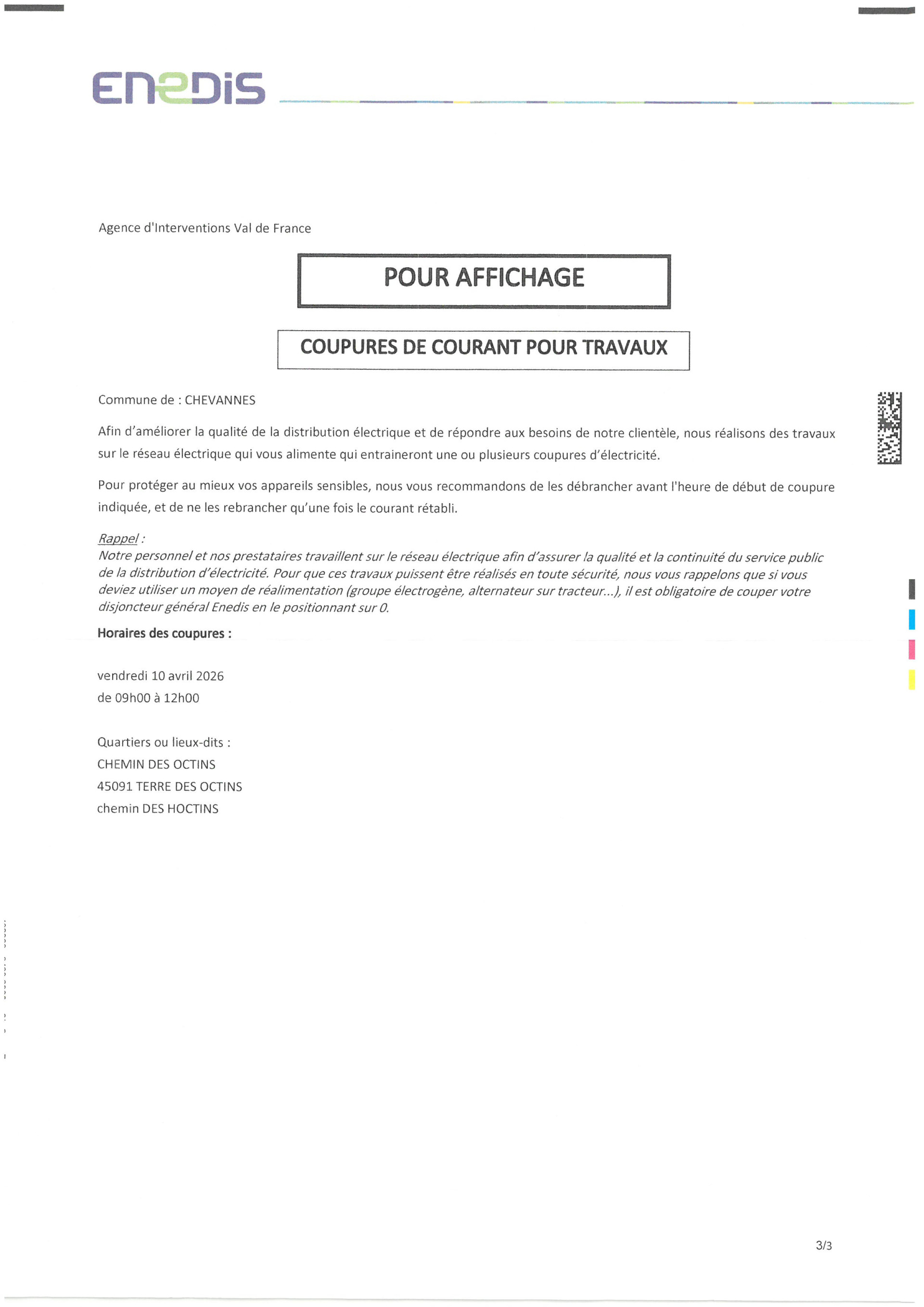 Coupure de courant dans la commune